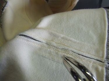 ジップカーディガンの袖と前身ごろに付いた染み抜きです。