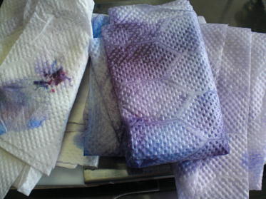 インクの染み抜きで、インクをタオルに移し取って汚れました。