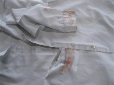 両袖に血液が付いてしまった、とお持ち頂きました。