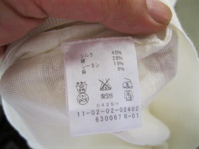 白のサマーセーター(シルク45%、綿28%、レーヨン19%、麻%)が