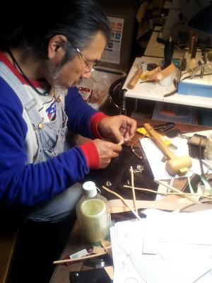 画像は私のウォレットコードの金具を修理してもらっているところです。