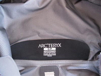 アークテリクス、ゴアテックスプロ(GORE-TEX Pro)の表示。
