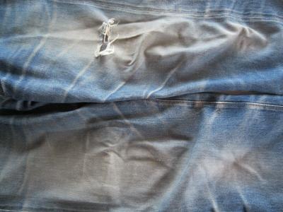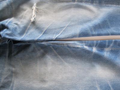 ジーンズは摩擦された所が色落ちする、って事なんです。