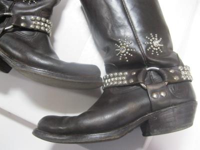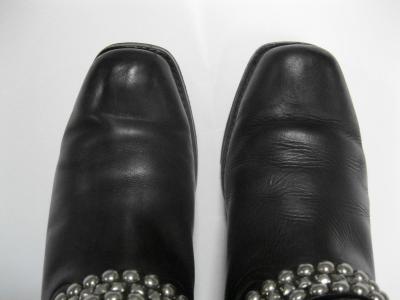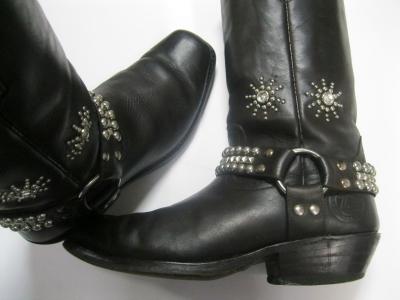 スタッズ付きのリングブーツ。