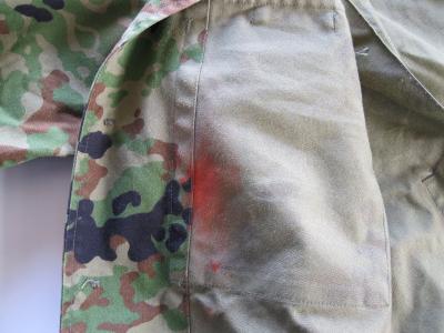胸ポケットの中から染み出た朱肉の染みです。