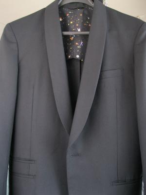 ショールカラーの黒のジャケットです。